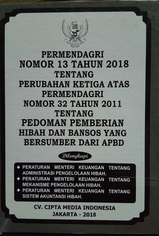 | Title | Permendagri Nomor 13 Tahun 2018 tentang Perubahan Ketiga Atas Permendagri Nomor 32 Tahun 2011 tentang Pedoman Pemberian Hibah dan Bansos yang Bersumber dari APBD |
