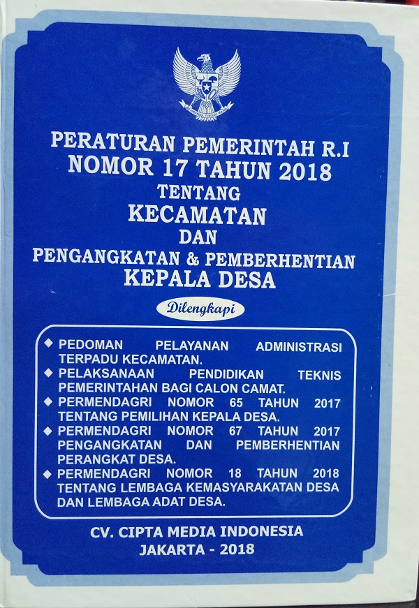 | Title | Peraturan Pemerintah RI Nomor 17 Tahun 2018 tentang Kecamatan dan Pengangkatan & Pemberhentian Kepala Desa |