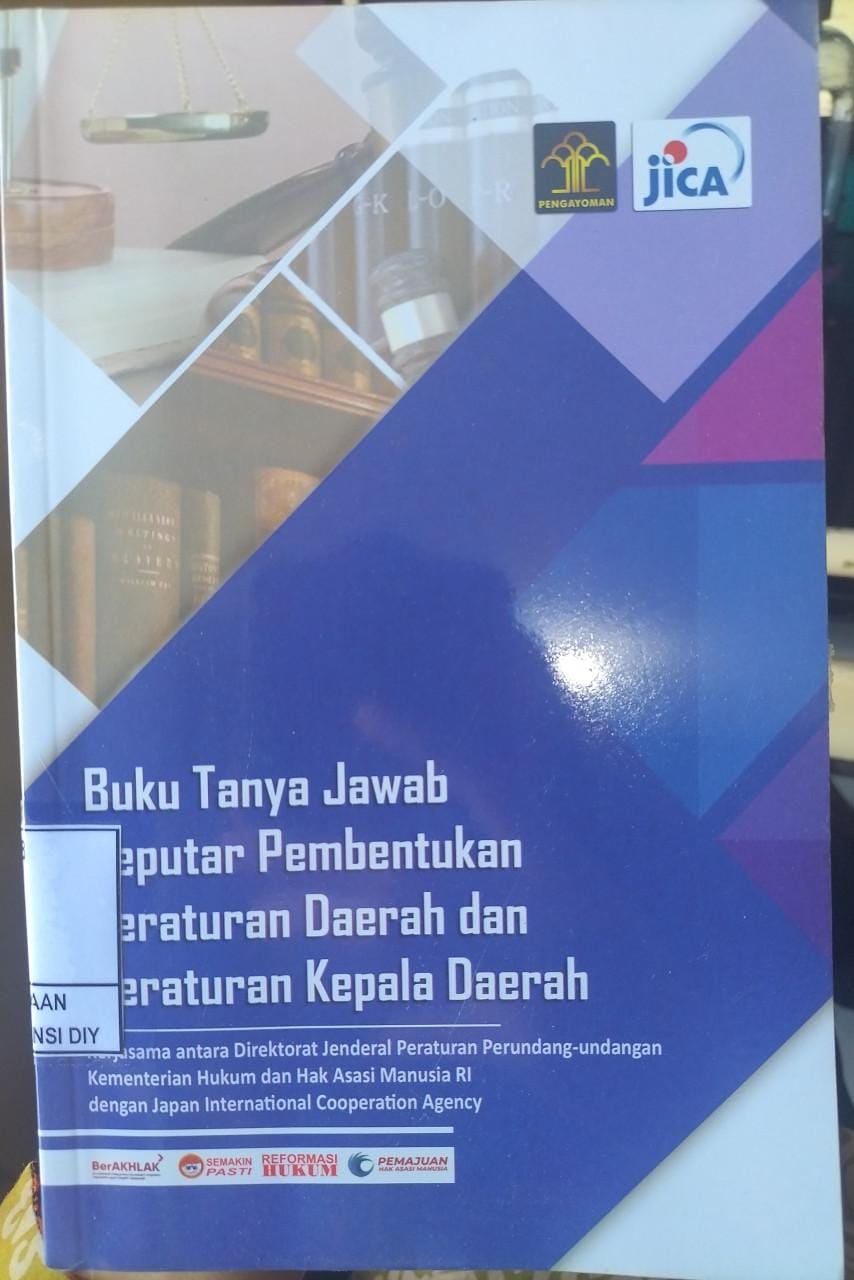 | Abstract/Notes | Buku Tanya Jawab Seputar Pembentukan Peraturan Daerah dan Peraturan Kepala Daerah memuat pertanyaan dan jawaban sebagai panduan praktis bagi pejabat pembentuk peraturan perundang-undangan di tingkat pusat maupun daerah untuk memperoleh pemahaman vang sama agar dapat membentuk peratura perundang-undangan yang berkualitas. |